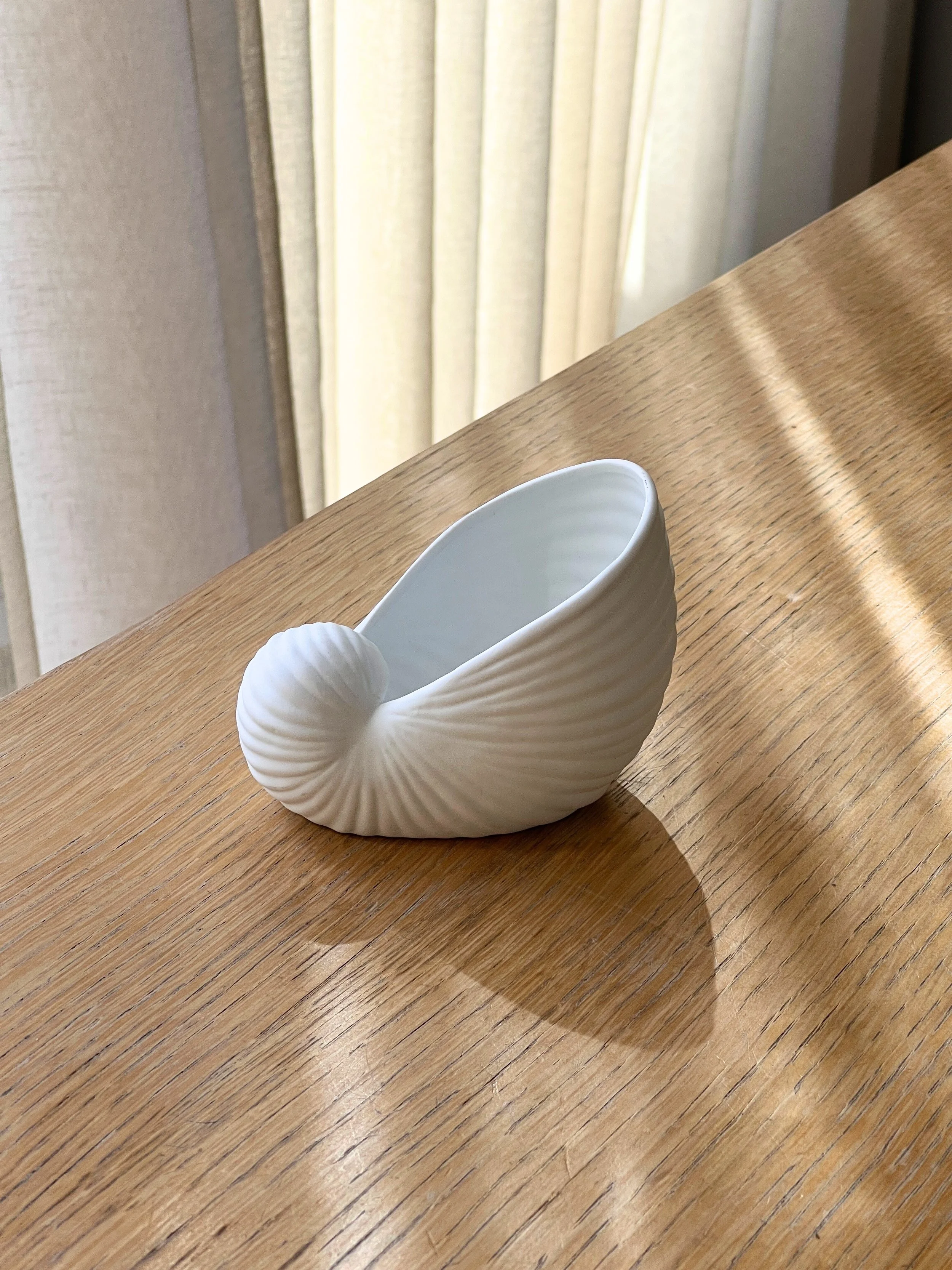 Pair of vintage ceramic shell-shaped pieces that work beautifully as candle holders, decorative accents, or catch-alls for jewelry and small essentials on your dresser. Soft coastal charm with a touch of versatility.