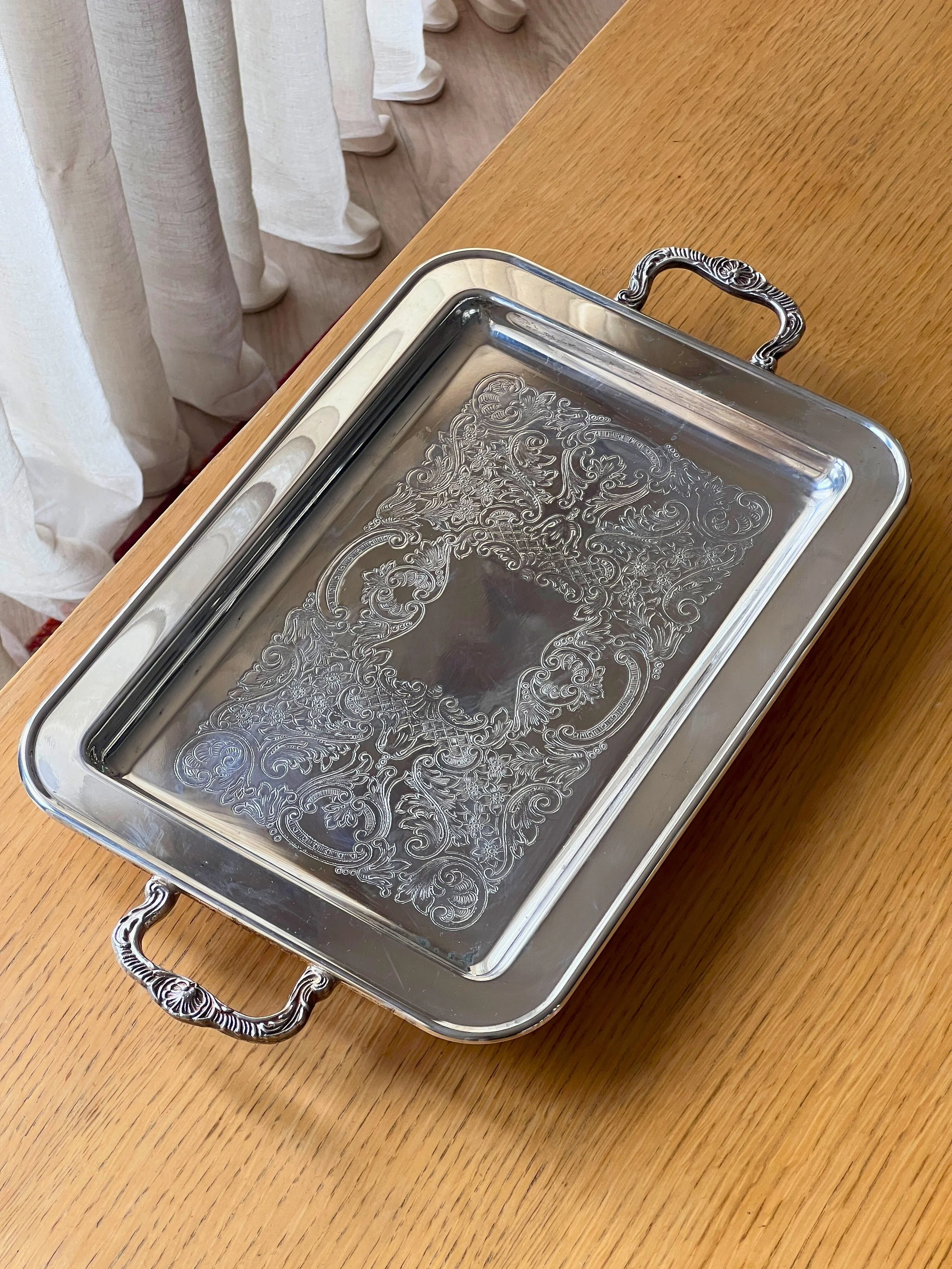 Introducing a set of two vintage Italian ceramic serving plates adorned with watercolor decorations on the corners and shell figures in the middle. These plates are perfect for hosting elegant dinner parties.