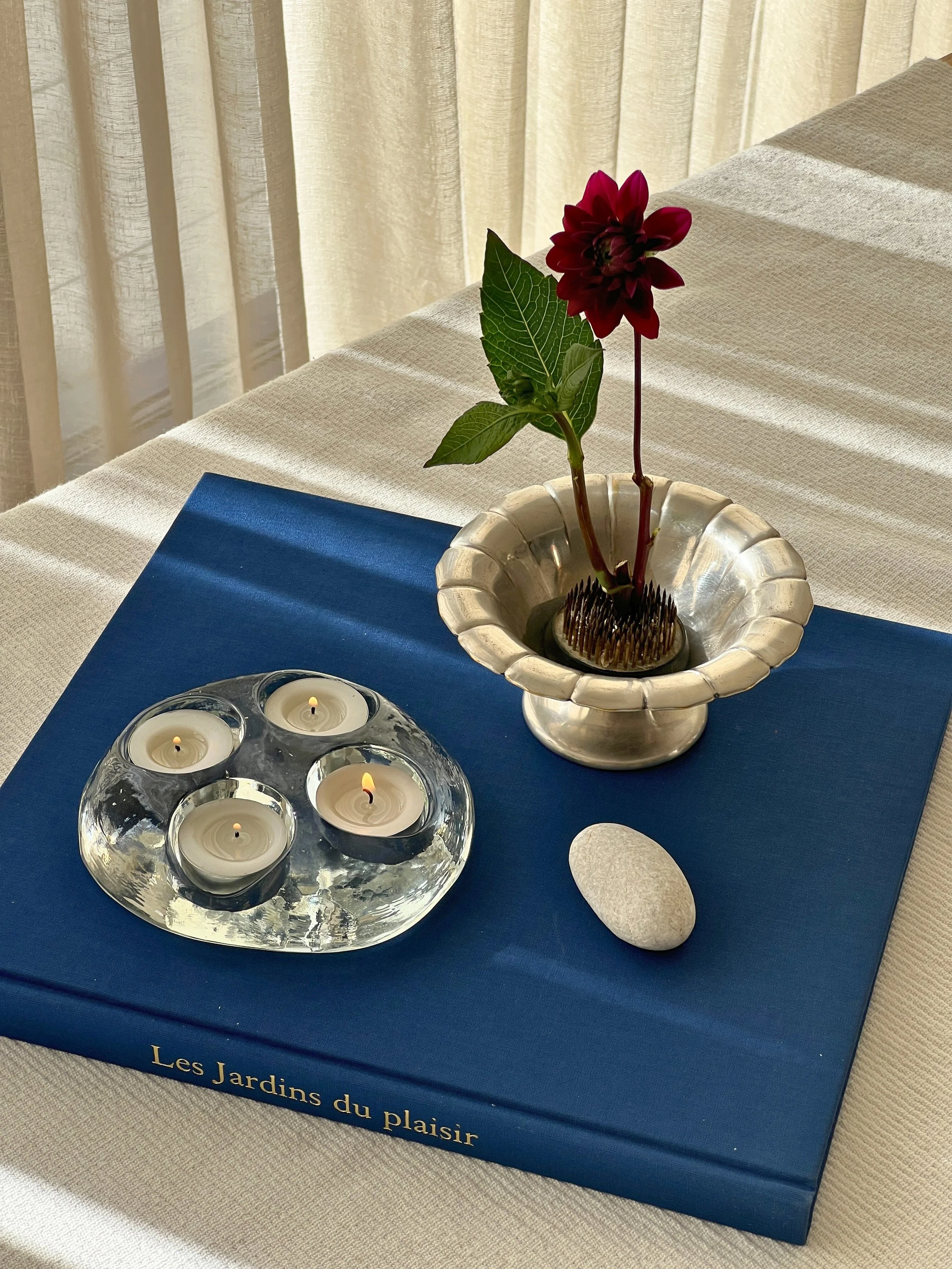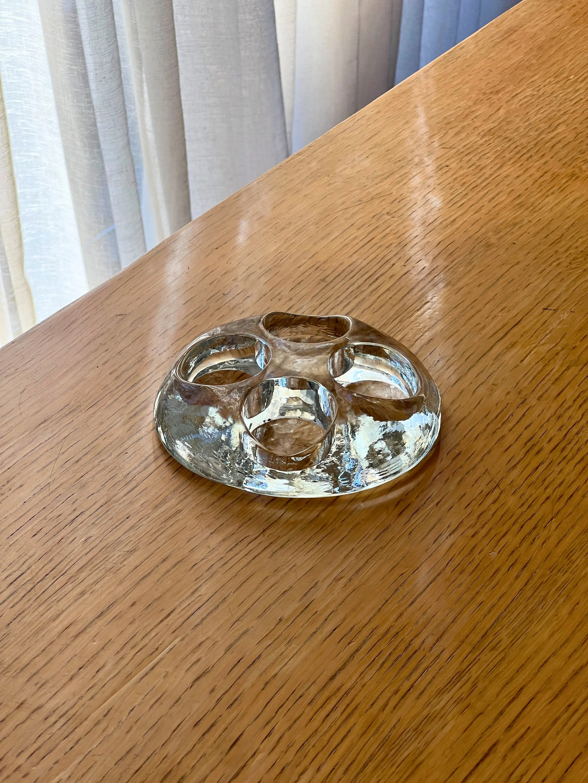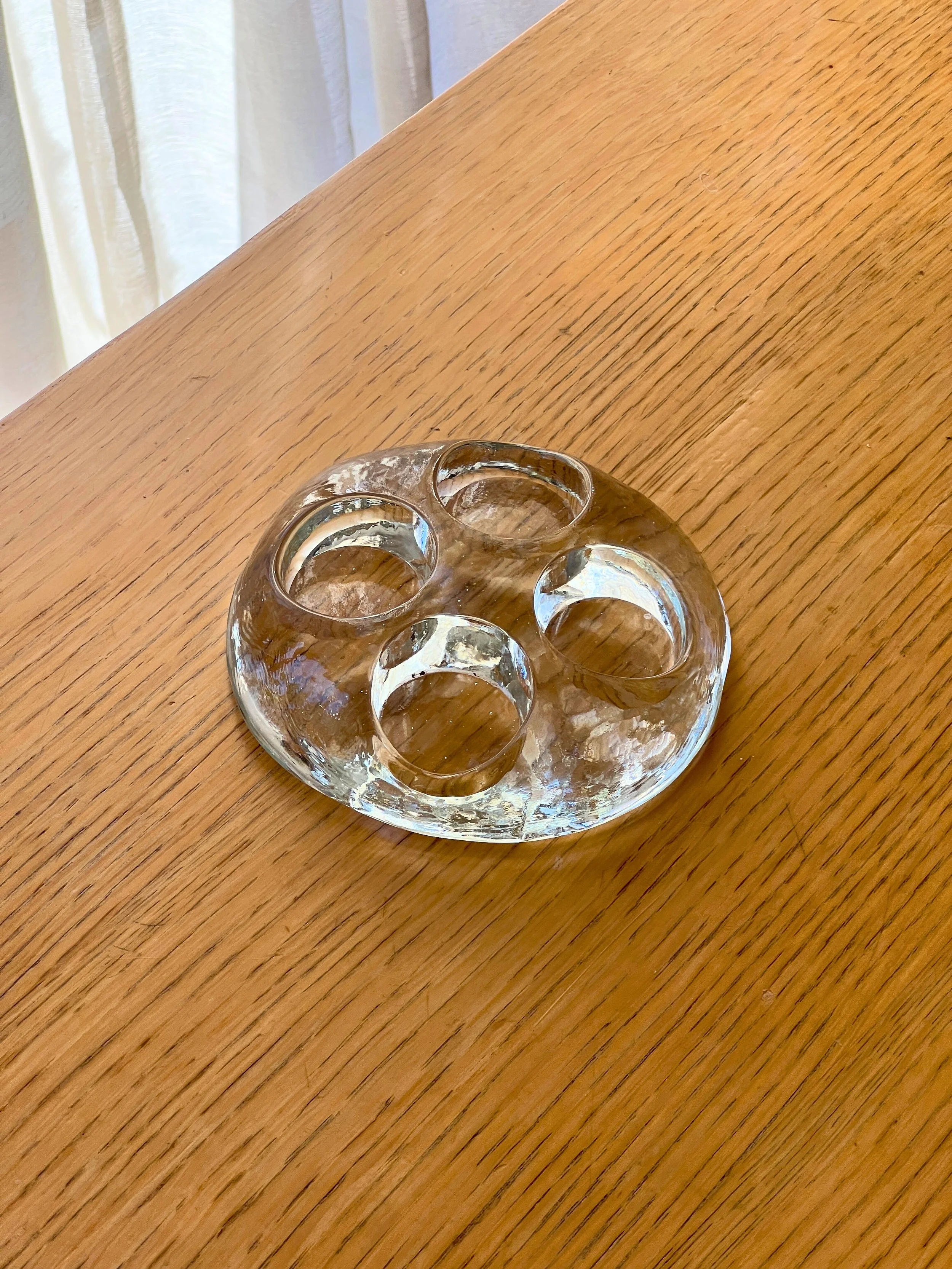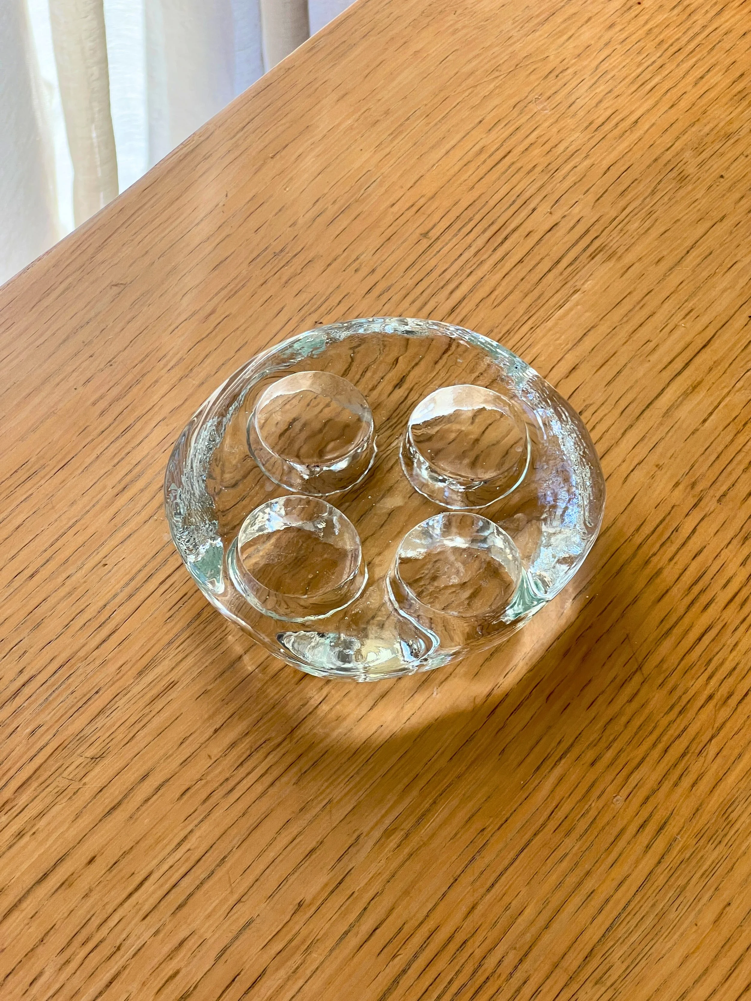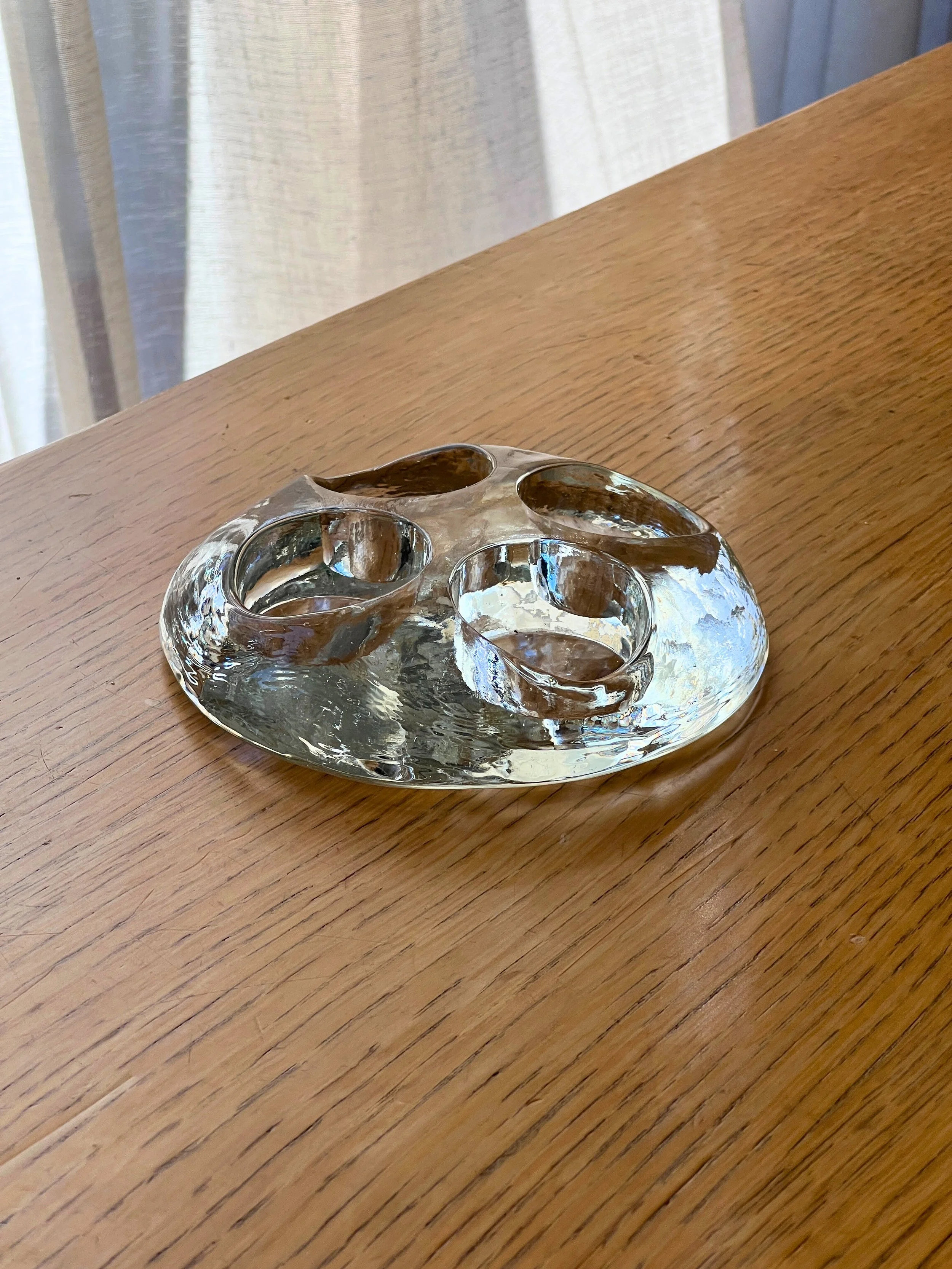 Set of 3 chunky glass pebble candle holders - solid, sculptural, and beautifully heavy. In great vintage condition. They catch the light like little molten stones.