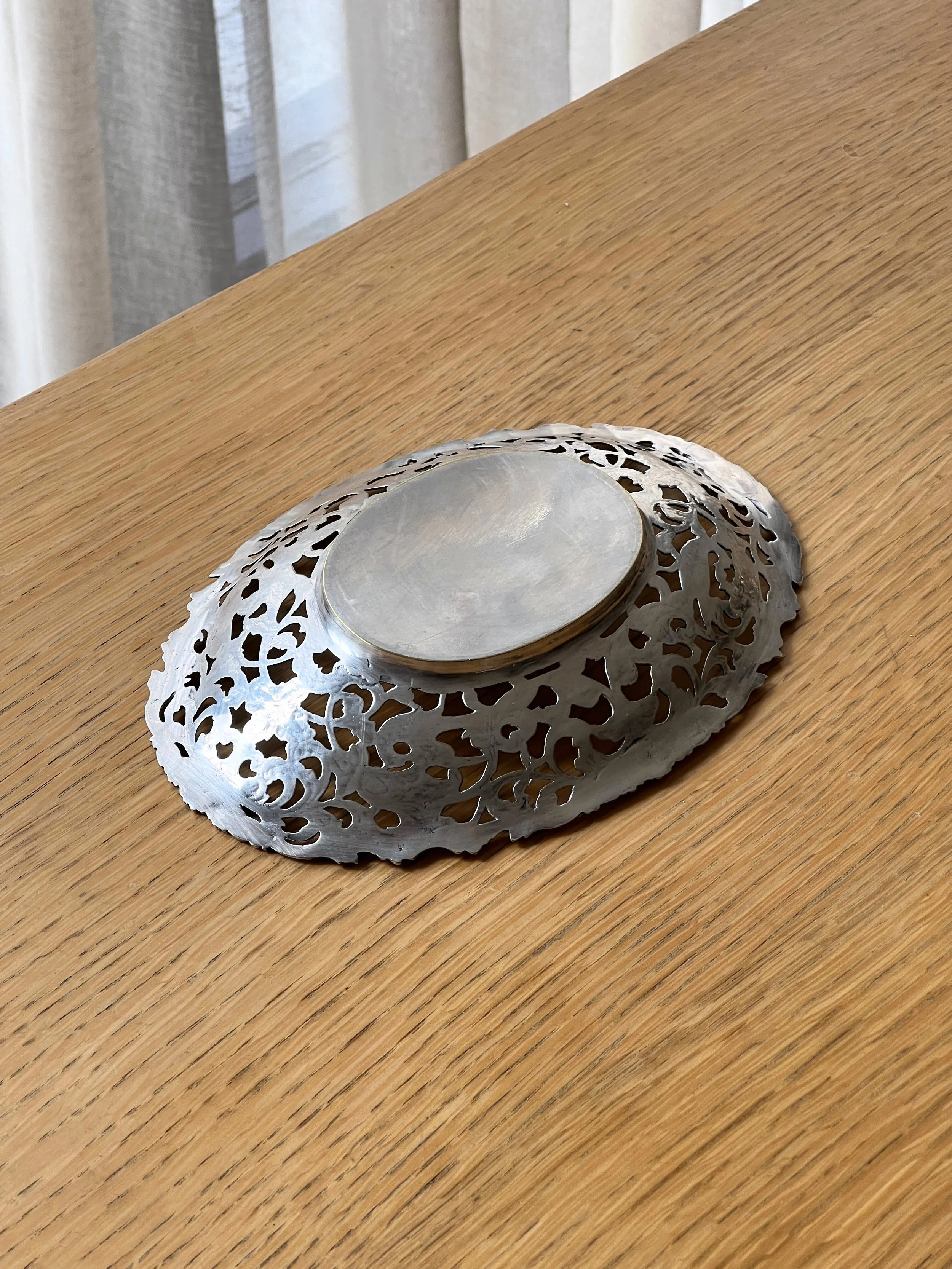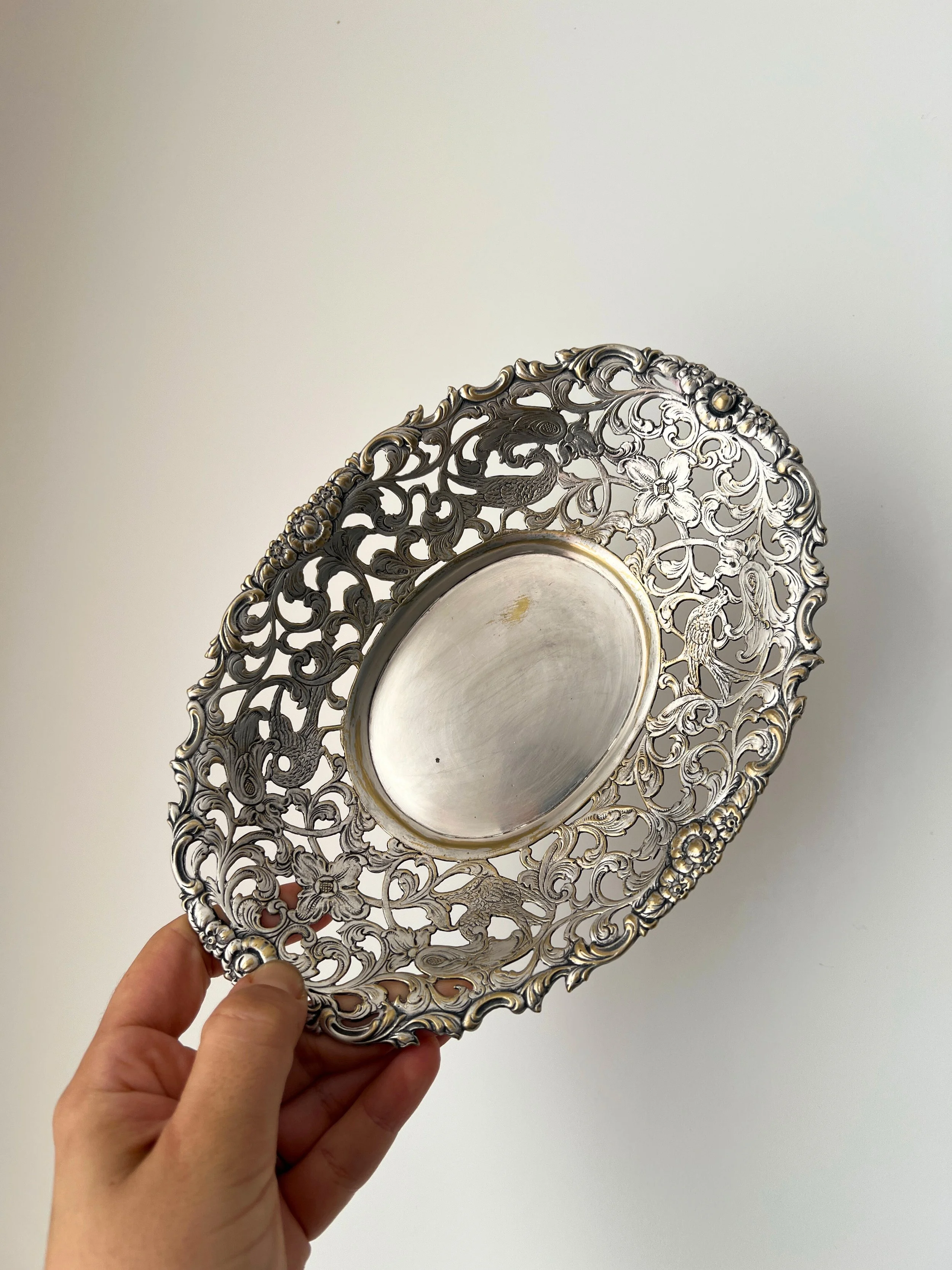 Vintage silver plated pierced bowl with floral & bird motif