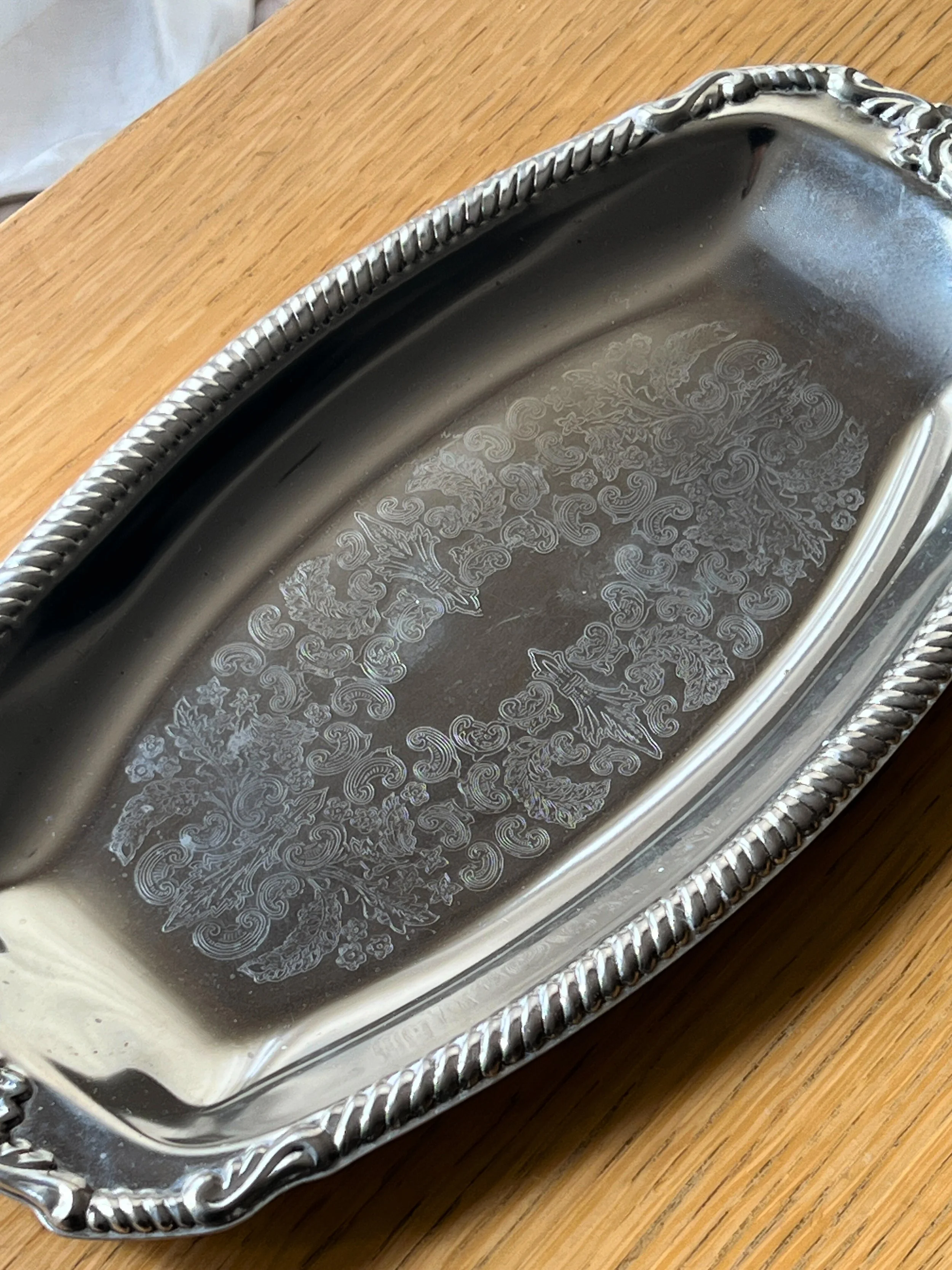 Bring timeless elegance to your table with this stunning vintage silverplate swan double dish. Featuring two scalloped shell bowls joined by a beautifully detailed swan handle, this piece is both decorative and functional.