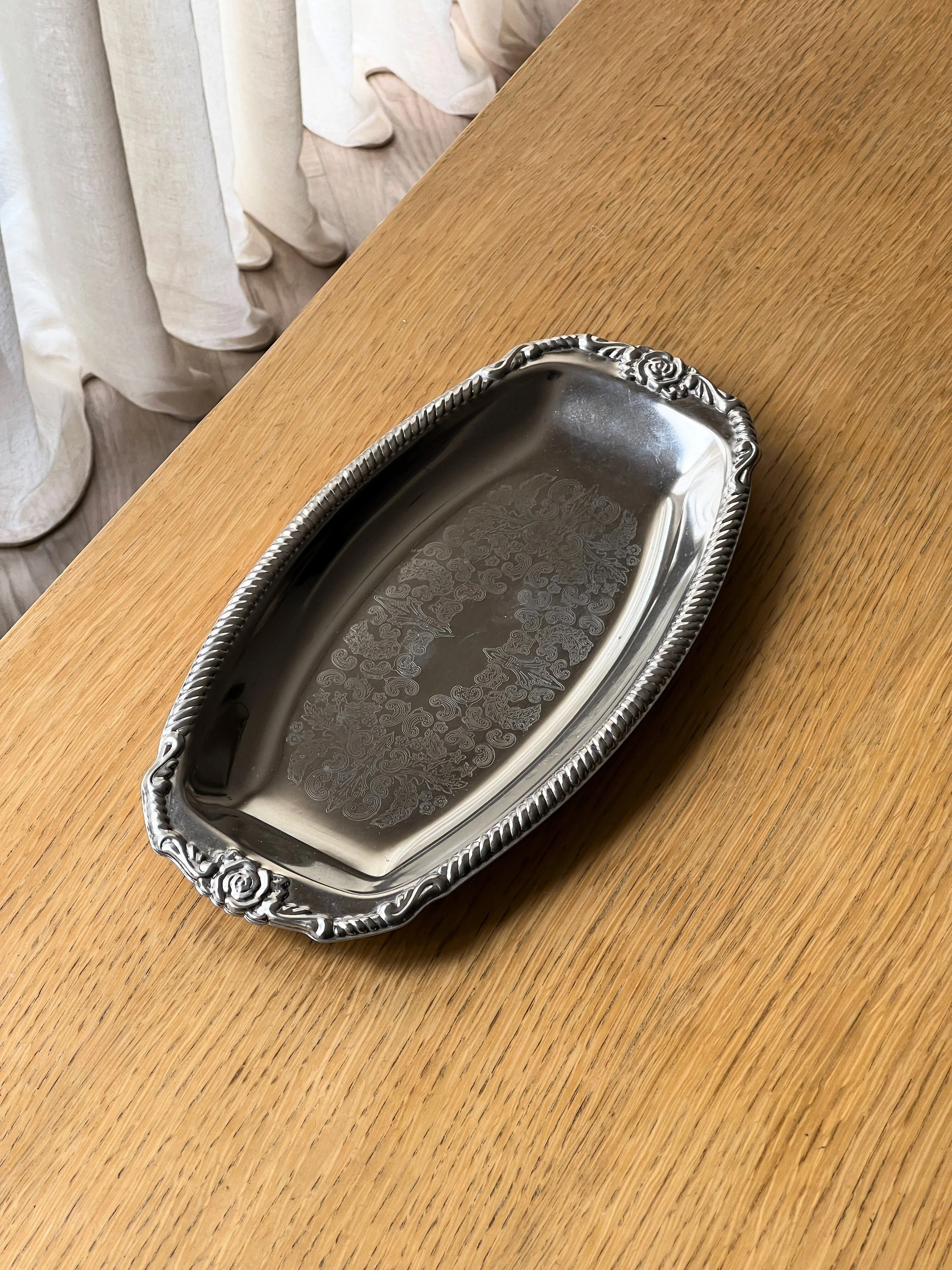 Perfect for serving nuts, candies, trinkets, or condiments, it also makes a refined centerpiece or vanity dish. Its graceful swan motif and shimmering silver finish add a touch of vintage glamour to any setting.