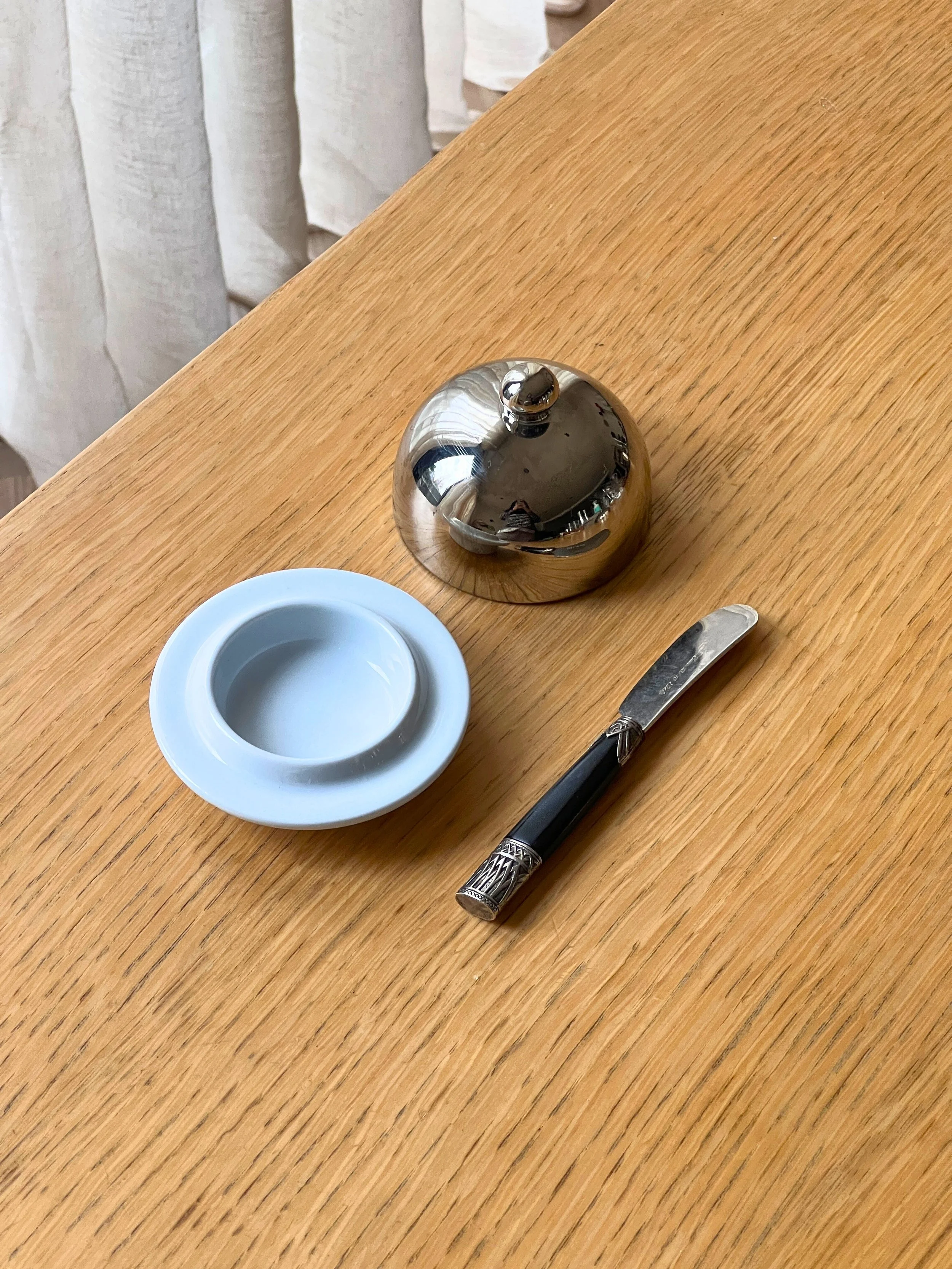 This vintage stainless steel butter dish with a lid is both stylish and practical, perfect for adding a touch of charm to your table. It’s a classic piece that’s stood the test of time and will keep your butter fresh and ready to serve!